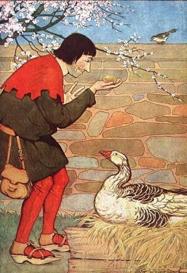 Nenek itu berkata benar. Di sana berbaring seekor angsa yang cantik, dadanya terbelah lebar, tapi tak ada sebutir telur pun terletak di dalam tubuhnya. Sekarang angsa itu hanya berguna untuk jadi angsa panggang.